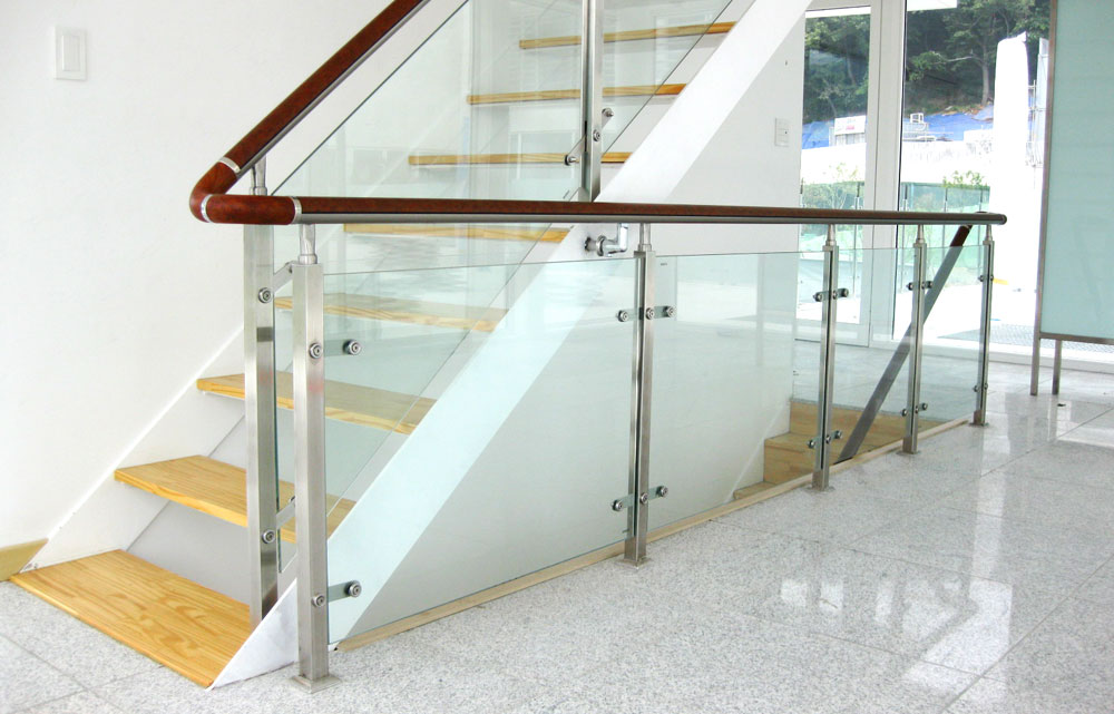 Handrail post [40 x 40mm SST pipe] + SST plate glass holder set + Ø25.4 SST handrail connecting pipe + Base plate + Base cap