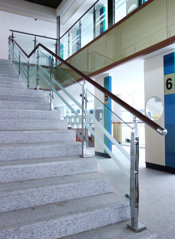 Handrail post [4T SST Plate] + 40 x 40mm SST pipe + 4T SST plate glass holder set + Ø25.4 SST handrail connecting pipe + Base plate + Base cap